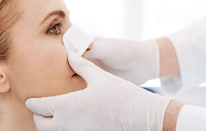در روزهای اول پس از عمل جراحی بینی، مهم است که از تغییرات ایجاد شده در بافت بینی حفاظت شود. پس از بستن شکاف های ایجاد شده در طول عمل جراحی، جراح از یک اسپلینت به منظور کمک به حفظ ظاهر جدید بینی استفاده می کند. در بعضی موارد، پزشک همچنین از قطعه های گاز استریل یا بانداژ مخصوص در داخل منافذ بینی استفاده می کند.