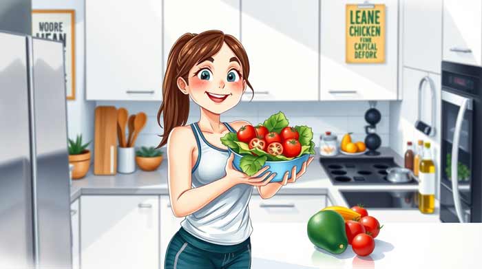 | ناهار | سالاد سبز با مرغ گریل شده + روغن زیتون | 500-600 کالری | سالاد باید حاوی سبزیجات کمکربوهیدرات باشد. |